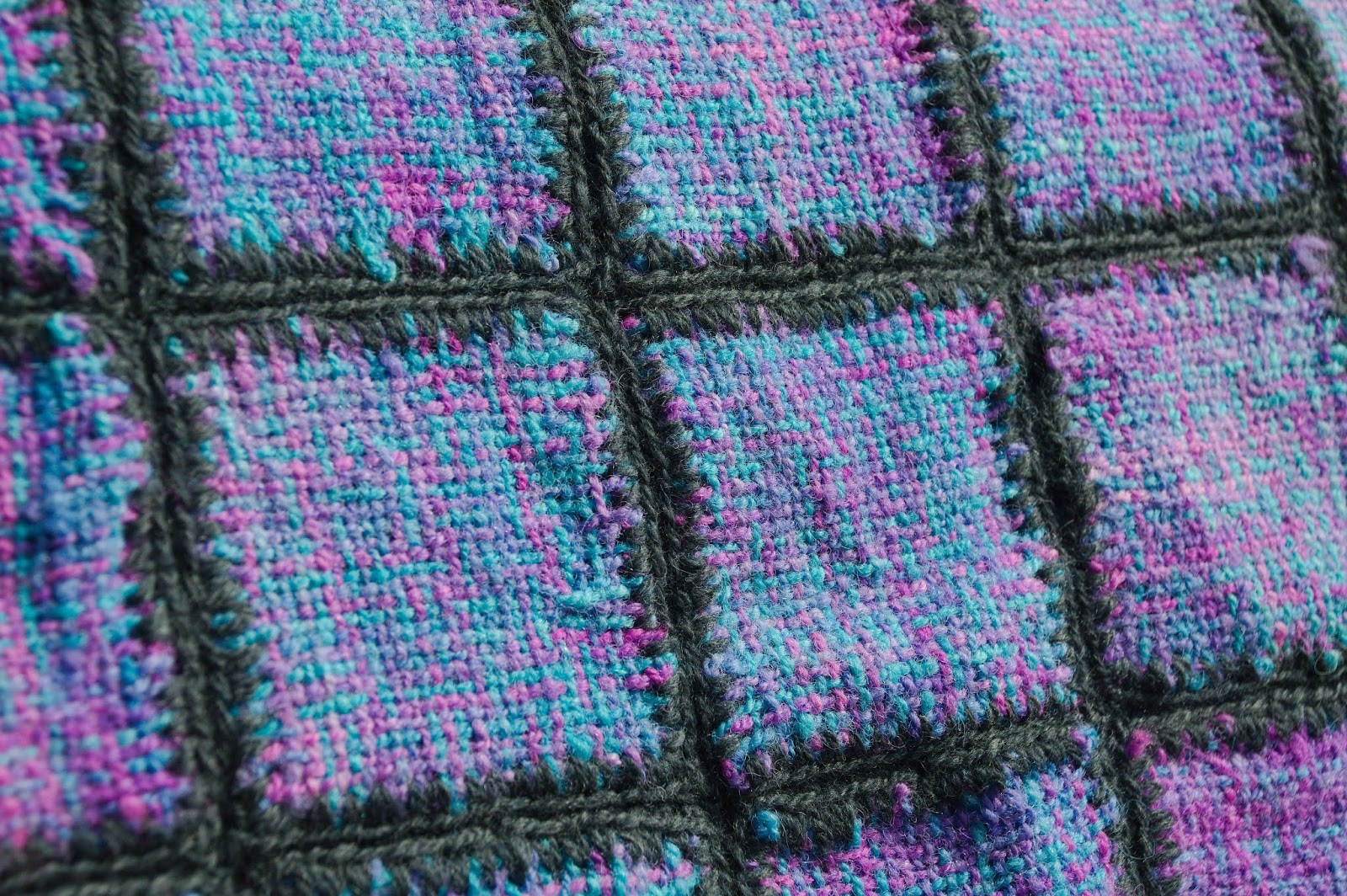 Stitching the edges and crocheting them together took as long as making the squares!Postcard from Wonderwool Wales 2018